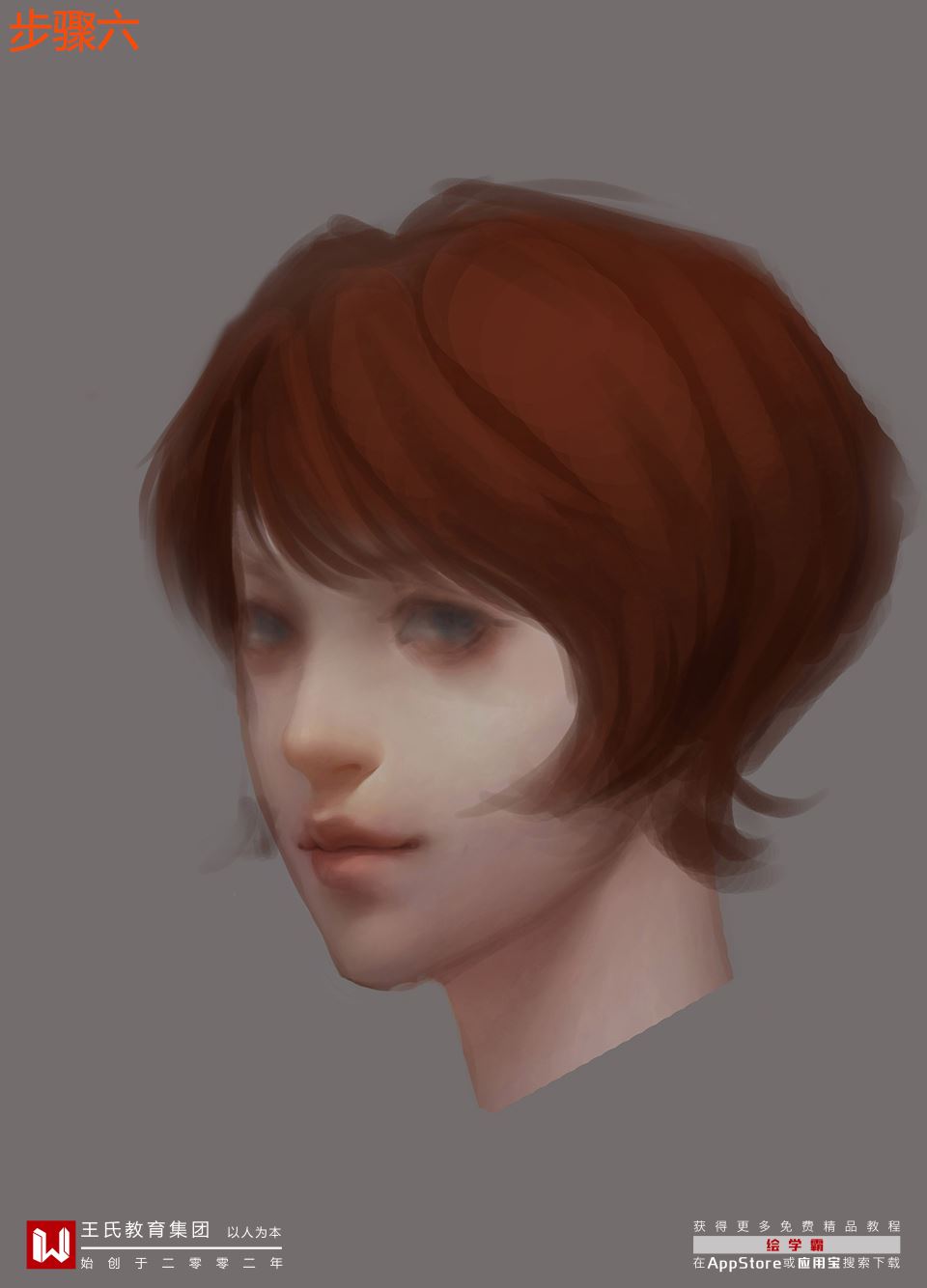 6.给头像加上发型,把头像看做一个整体来处理明暗,然后再画出头发的走向和分组。