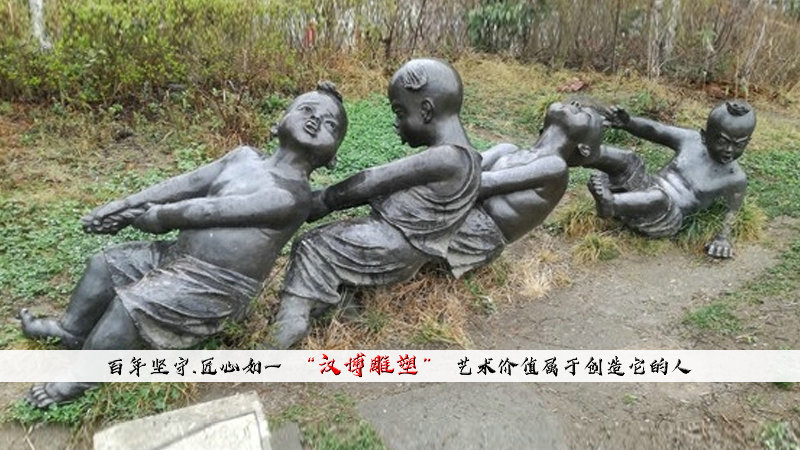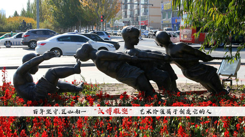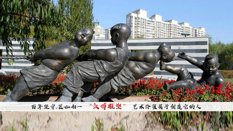 童趣雕像制作,人物铜雕定制,小孩拔河雕塑