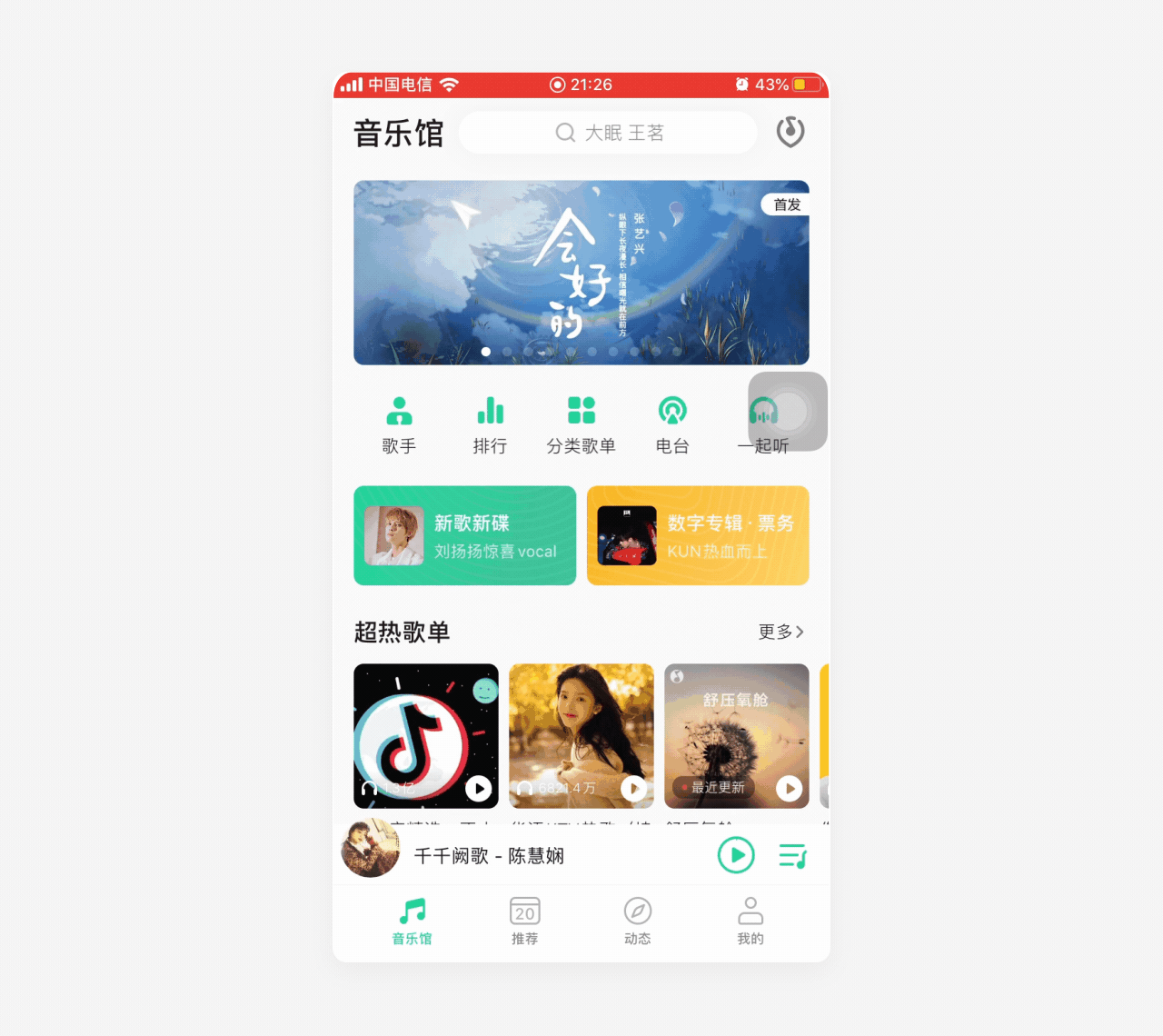 酷狗音乐页面加载Loading,当网络不好,页面内容一直加载不出来时,Loading颜色由蓝色变橙色+文字加载缓慢,从视觉上给用户更直观的感受,避免用户一直等待的焦虑情绪。