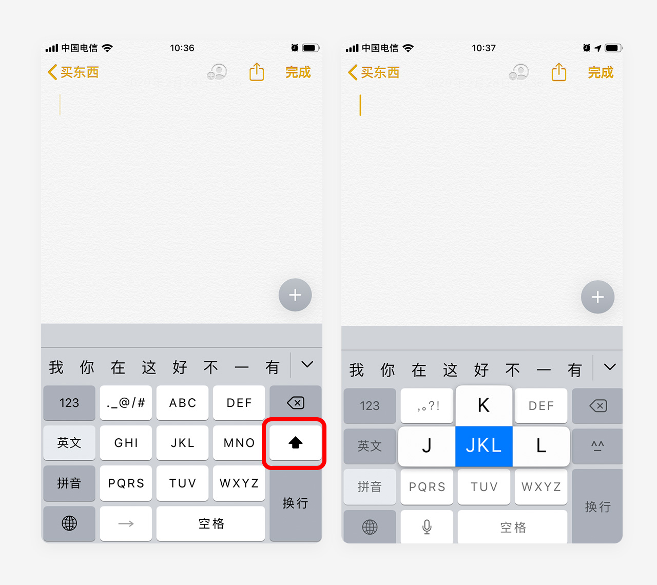 苹果手机自带的系统键盘,在九宫格简拼音键盘-英文状态下,双击锁定键可以锁定大写,以往我都是点一个字母锁一次,很繁琐的操作,在拼音状态下,长按键盘可以快速选择字母,这些隐藏的交互,提供了更好的体验。