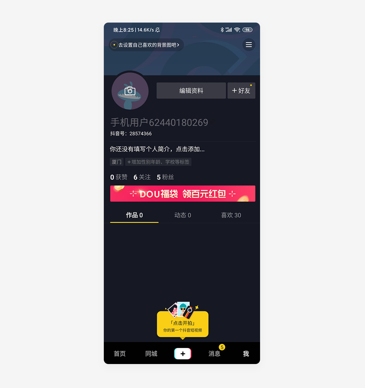 抖音,相比其他应用对空页面的处理:插图+文案形式;抖音在空页面的设计上更走心,摒弃显而易见的空状态文案提示,采用带有“行动性指令“的轻交互动效来进行用户引导,让用户快速的进入到产品使用中,减少新用户流失,提升用户体验,同时提高了业务转化。