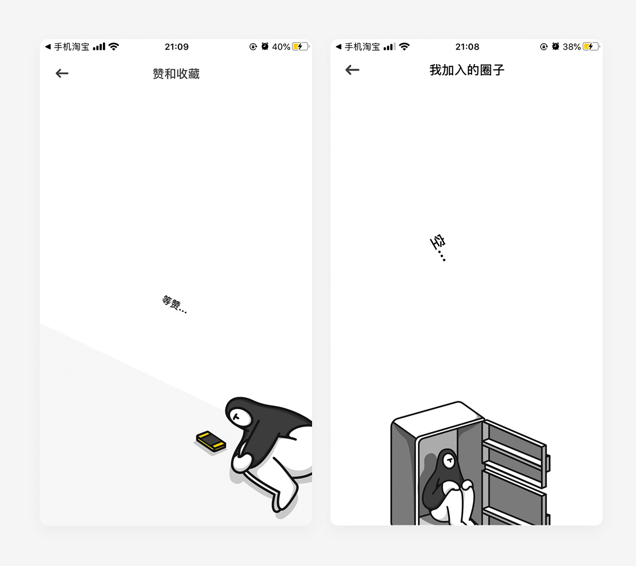 躺平,与普通的空状态设计相比,把整个空状态页都当做一个场景去勾画,配以细节创新有趣的文案,可以为用户带来惊喜与视觉冲击。