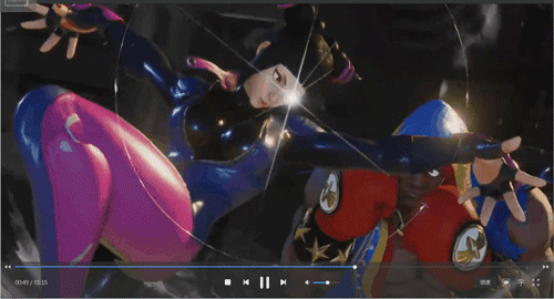 显然这是一个下劈攻击。在这个动作中没有明显的特效暗示,但我们依然可以提前预知她的攻击方式,或者说攻击方向,这就是优秀格斗游戏的一个特征,在极短的时间内提前给玩家一个预期,然后用炫酷的方式达到预期,从而加强游戏整体的爽快感;而这种设计有时还有另外的目的,给予对手玩家一个极短的预判反应时间,虽然这么短的时间内普通玩家肯定是反应不过来的,但对于高玩或者职业玩家而言,任何细微的差距都有可能决定胜负;当然这种只存在于普通攻击当中,许多游戏中的大招都是固定镜头,被攻击的一方无法做出应对行为。