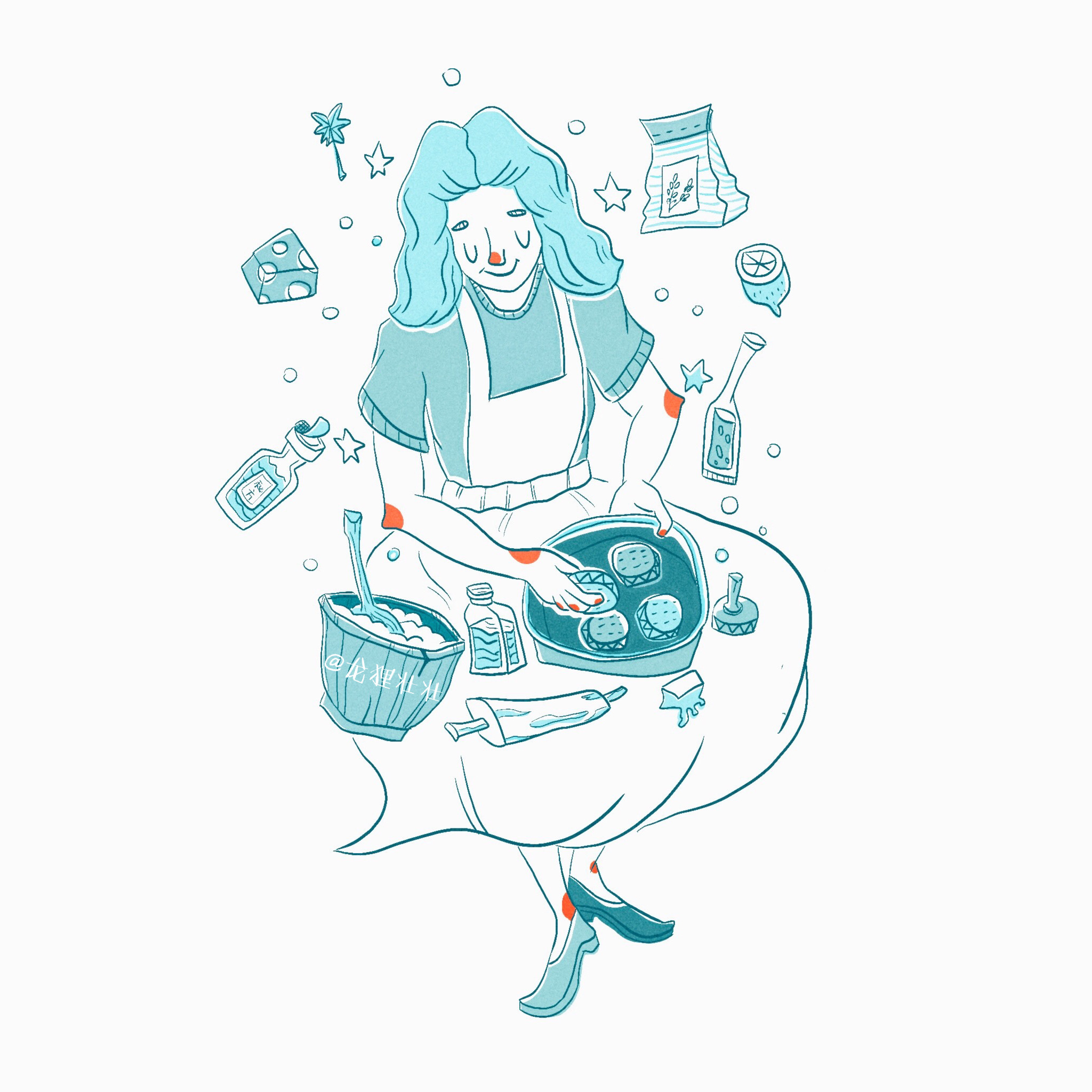 尝试单色调练习,选择了不同明度和饱和度的蓝绿色。练习的目的在于对线条/色块/形状/画面节奏进行探索。