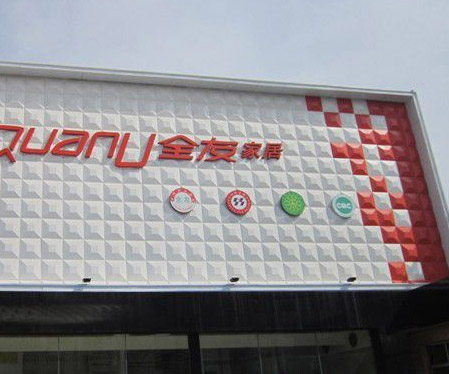 三维扣板是一种新型户外招牌立体装饰板。造型时尚简约,具有真实立体效果,且单块自由组合且可随性上色,展现灵活的装饰艺术效果。三维扣板防火阻燃,可水洗,可本色使用,也可DIY上色,容易切割,安装方便,不同的单块组合呈现三维立体效果。常见家具品牌商专卖店门头采用此材料装修比较多。