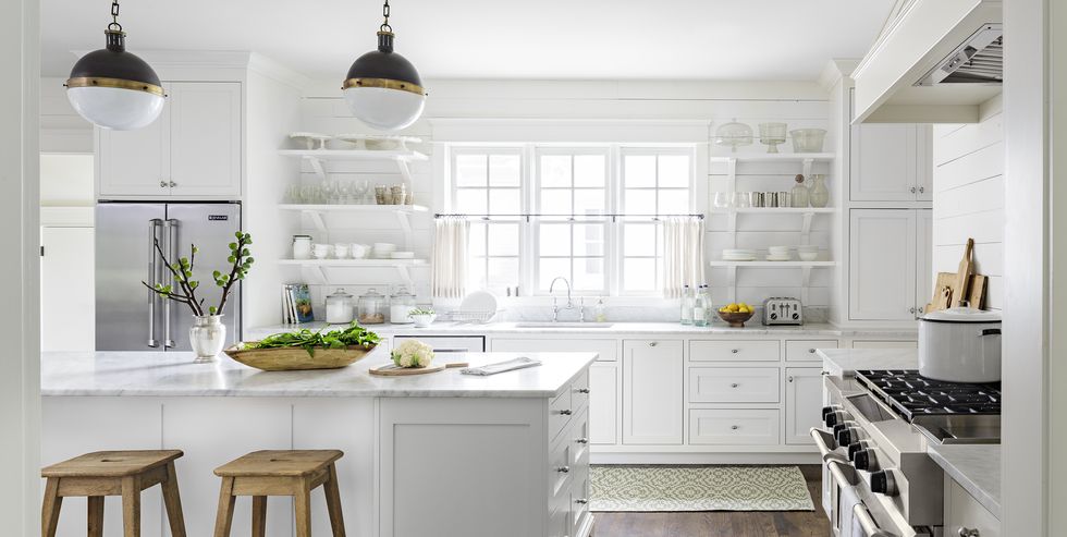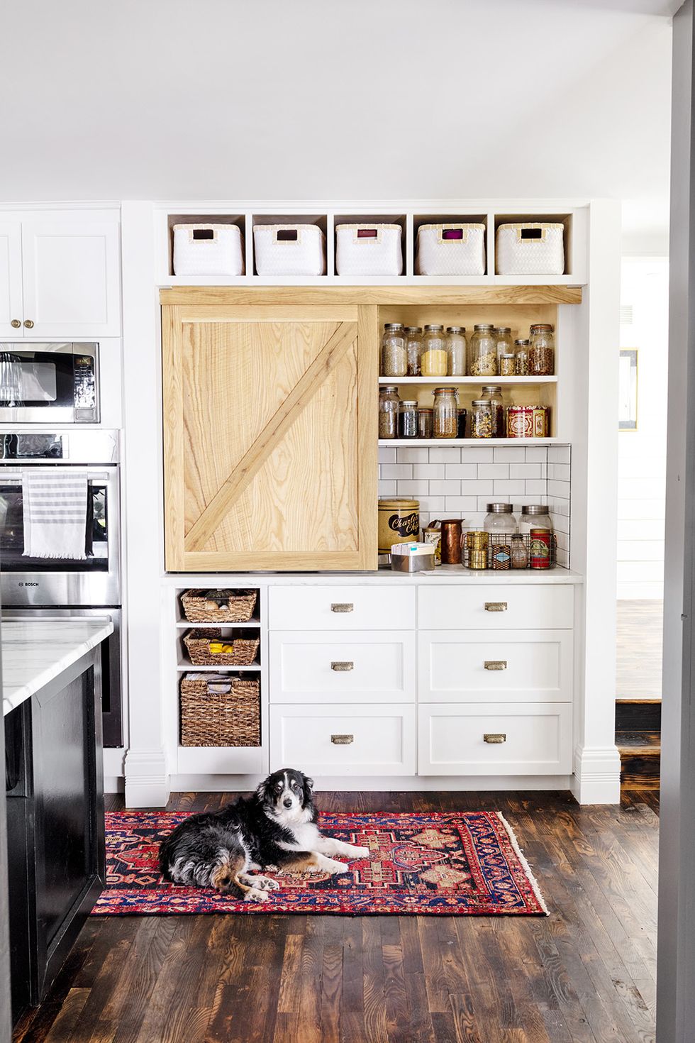 1. 隐藏空间。因为你永远不会有太多的存储空间,所以可以把体型较大的电器(例如,滑动门后面的立式搅拌机)存放起来。或者,为寻求更快的解决方案,请选择一个优质的篮子,以存放和隐藏季节性商品。