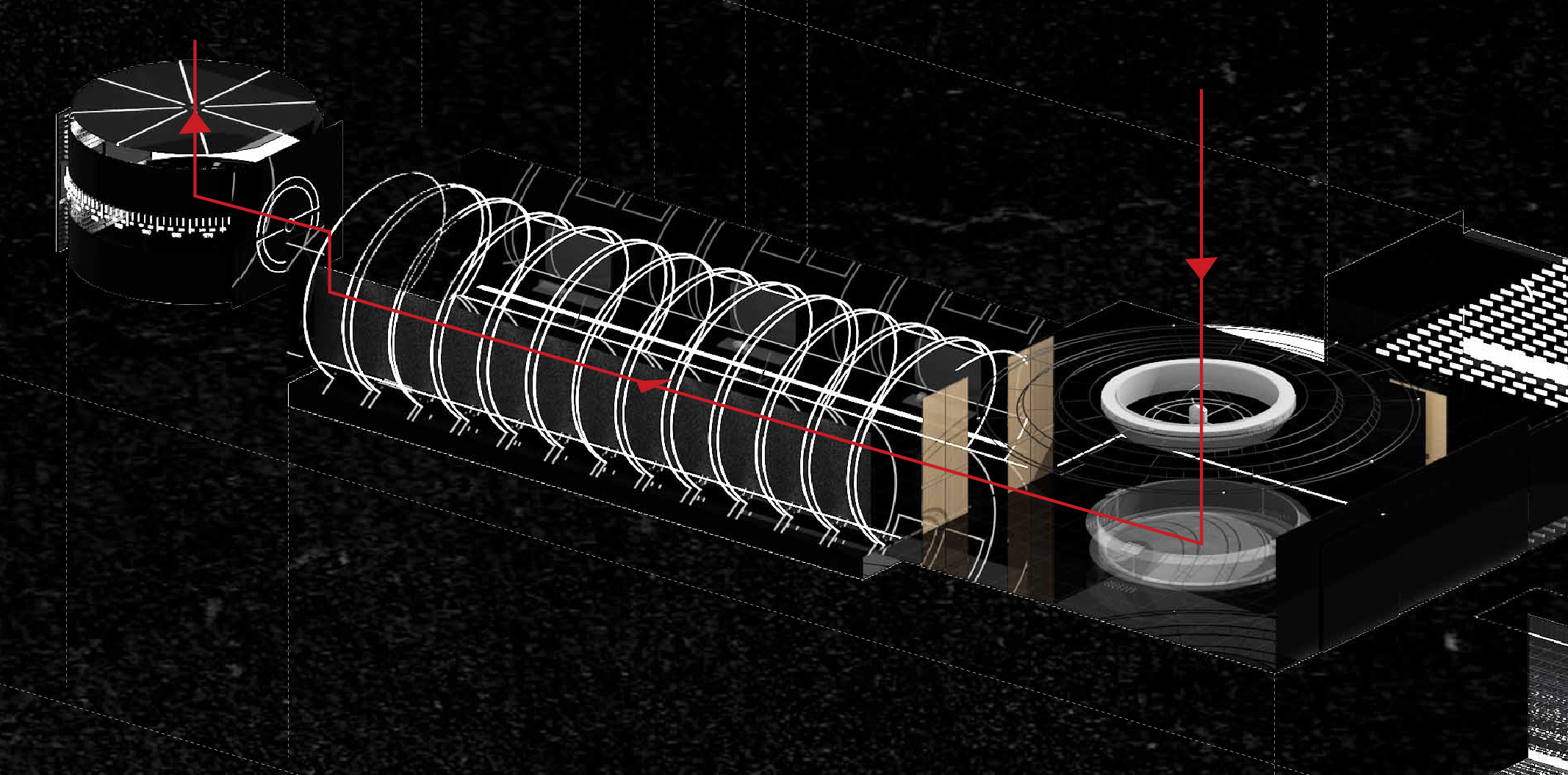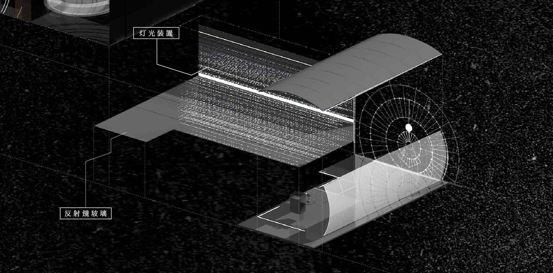 代表进入另一重空间的时光隧道,无限反射镜玻璃,灯光装置可随程式转变及向前流动,沉浸式暗空间,令来访者体验一场通过时光隧道抵达未来的旅程。
