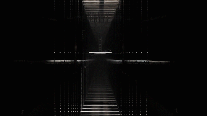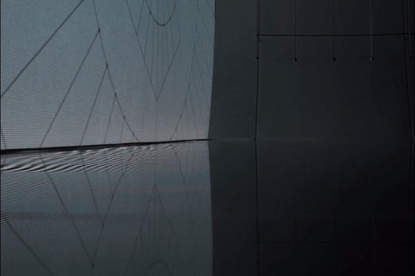 光之河的多媒体艺术装置,通过镜像的方式,演绎城市无限发展变幻的未来风景,黑与白线条的交织,演绎项目于苏州河畔新故事的起点。