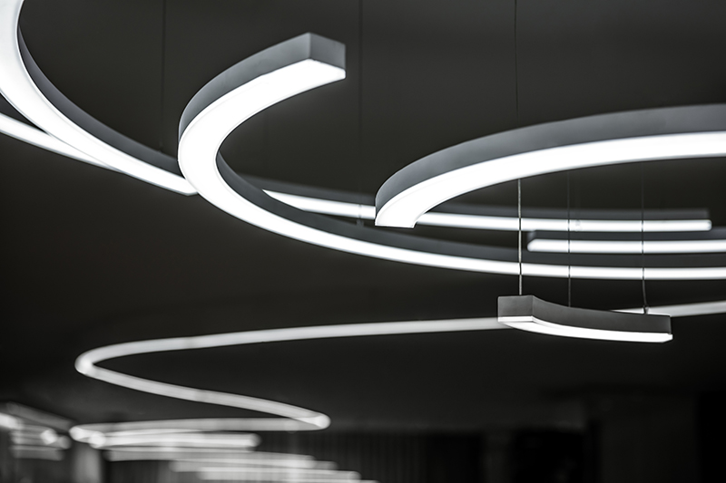 有水纹细节的书架、长短蜿蜒的河流灯带、绚丽的幻彩装饰,共同演绎了五彩斑斓的城市景象。