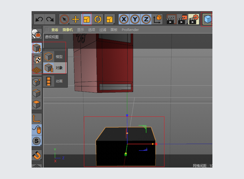 8.移动工具,每个坐标轴上有各小圆点,移动小圆点可以改变立方体的长,宽,高。