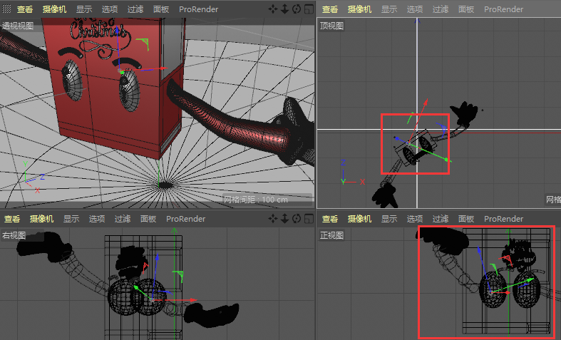 62.开始画纸盒时就要顶视图,正视图中网格对其,否则后面嘴不容易对齐。若之前没对其,可以从顶视图开始调整,将纸盒旋转成与网格对齐。正视图将五官调整对齐。