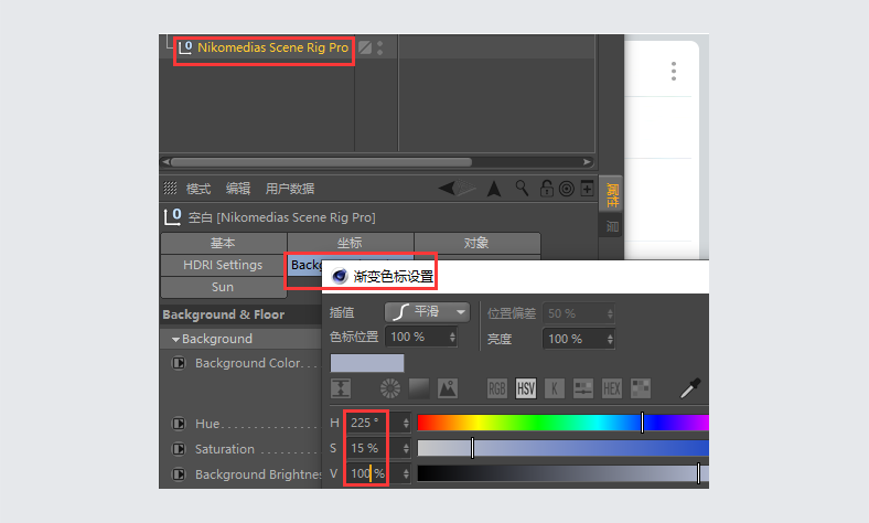20. 复制红色材质球,将H改为49就变成黄色,层颜色中的H改为55。