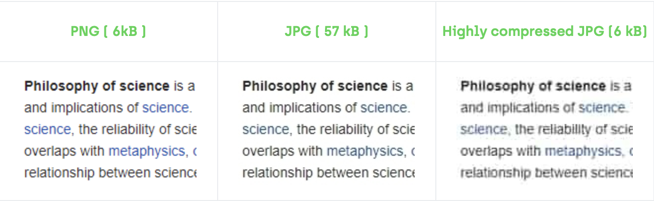 虽然PNG格式老,体积大,但它仍然在网络上占有一席之地,尤其是在一些对画质要求很高的场景。同时对于边缘非常锐利的图像(例如包含文本的图像),也建议选择PNG。 对此类图片,PNG压缩与其他格式(包括有损压缩)相比,文本图像使用PNG实际上具有更高的压缩率,并且具有更好的质量优势。