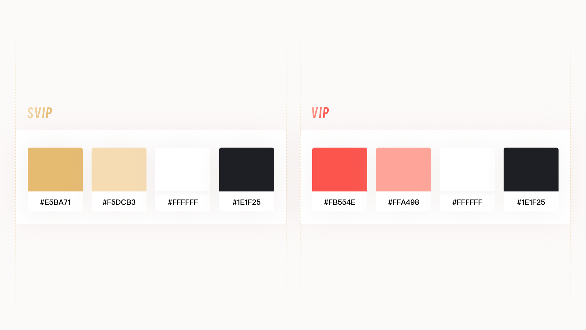 辅助色为黑白,因为它是色彩世界中的 “ 经典 ” ,给人以简洁、纯粹的审美感受和视觉享受。以黑白色作为会员体系的辅助色,可以衬托出黑金配色的尊享感。