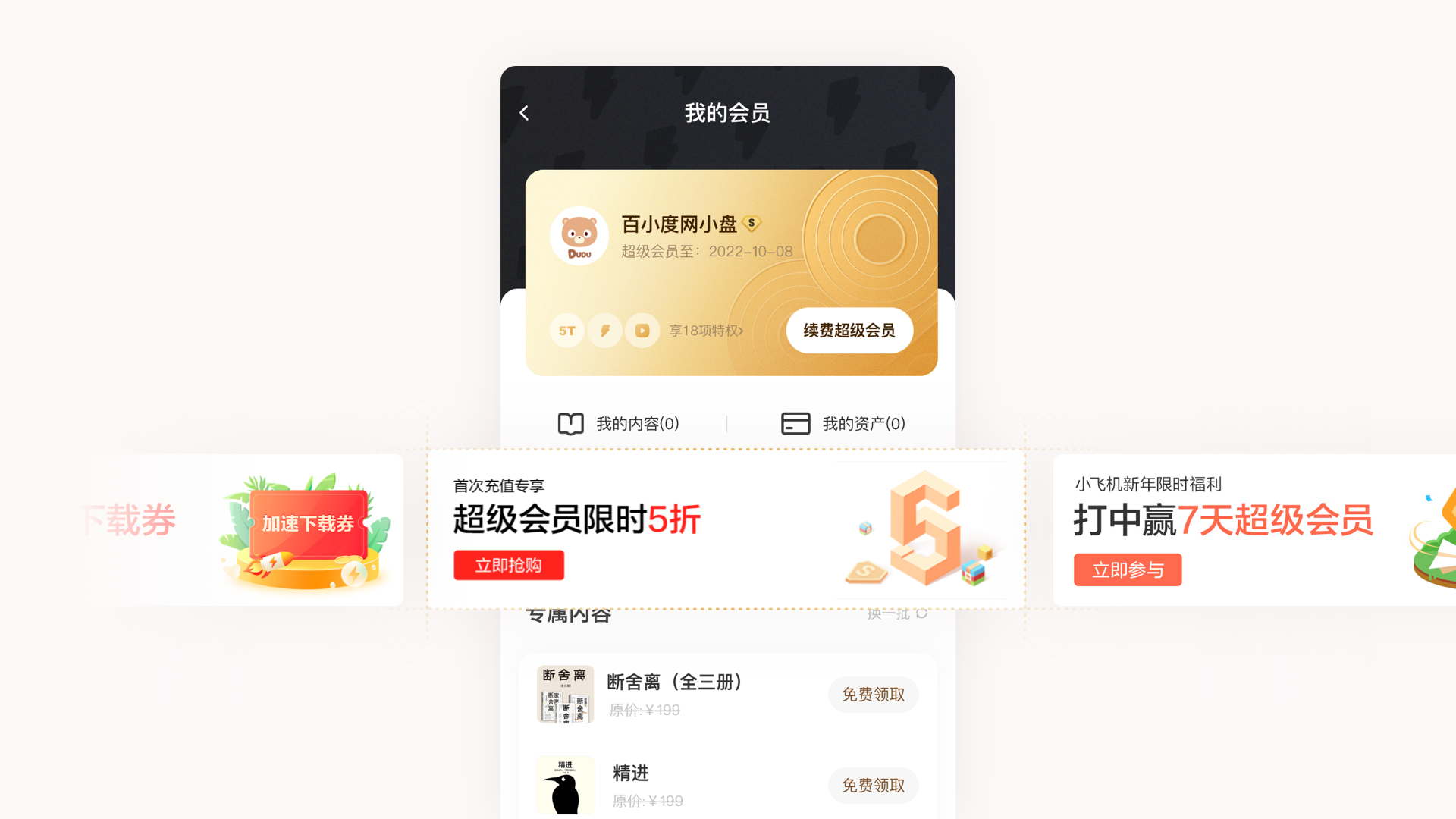 本次会员中心改版,是网盘所有同学的共同努力,同时也是会员中心提供给用户更多选择、更高效率、更多服务的第一步,它不再是机械的信息展示和冰冷的支付平台,而是更懂用户、提供给用户更多元服务的聚集地。