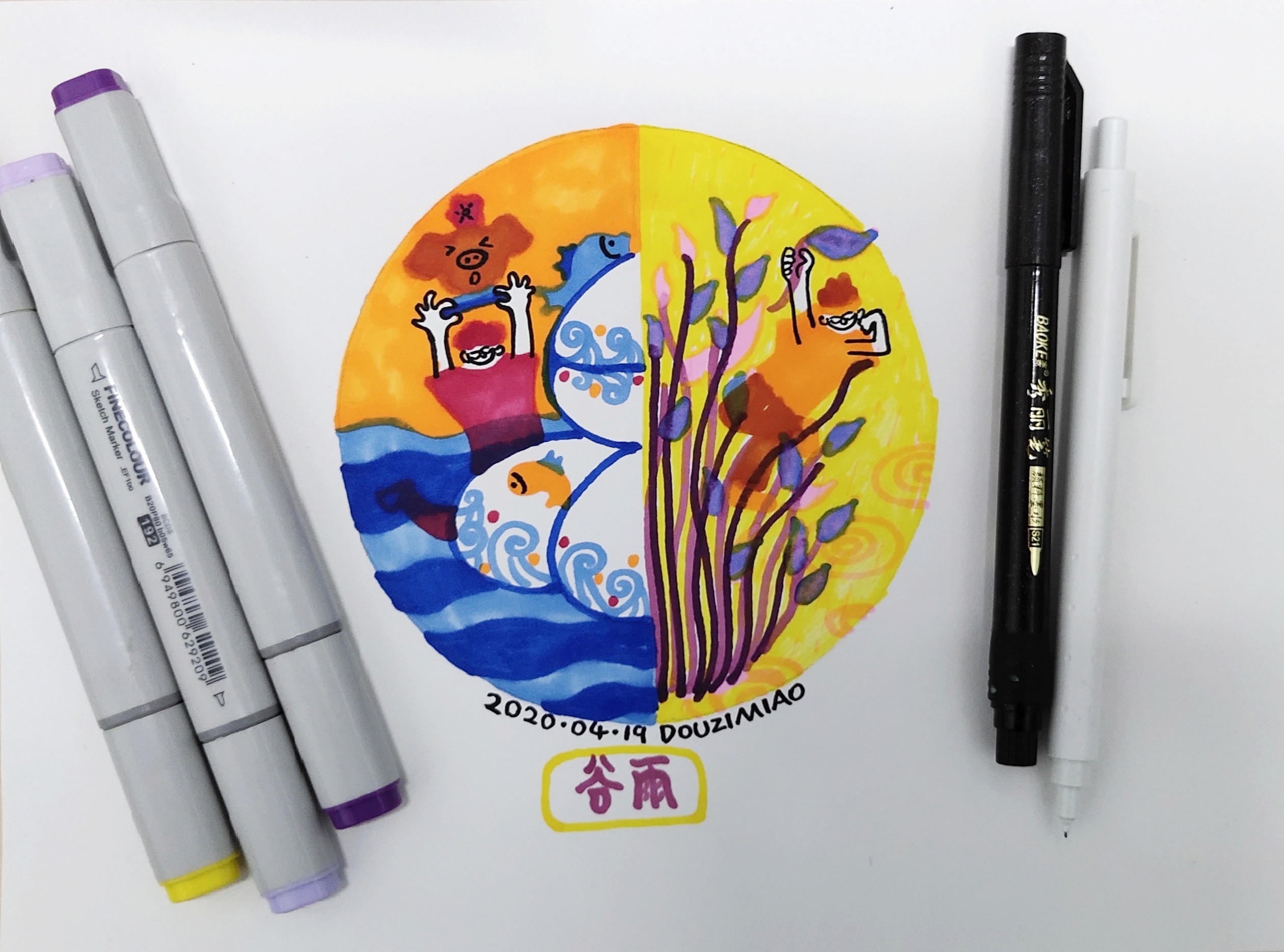豆子喵的课堂-15-谷雨创意画