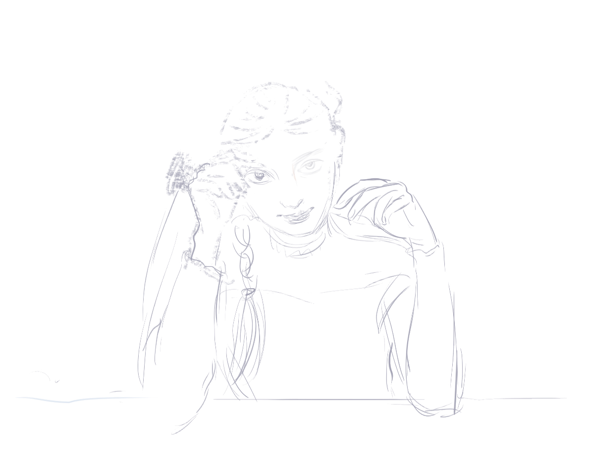 1、线稿画出人物比例及五官位置、形状