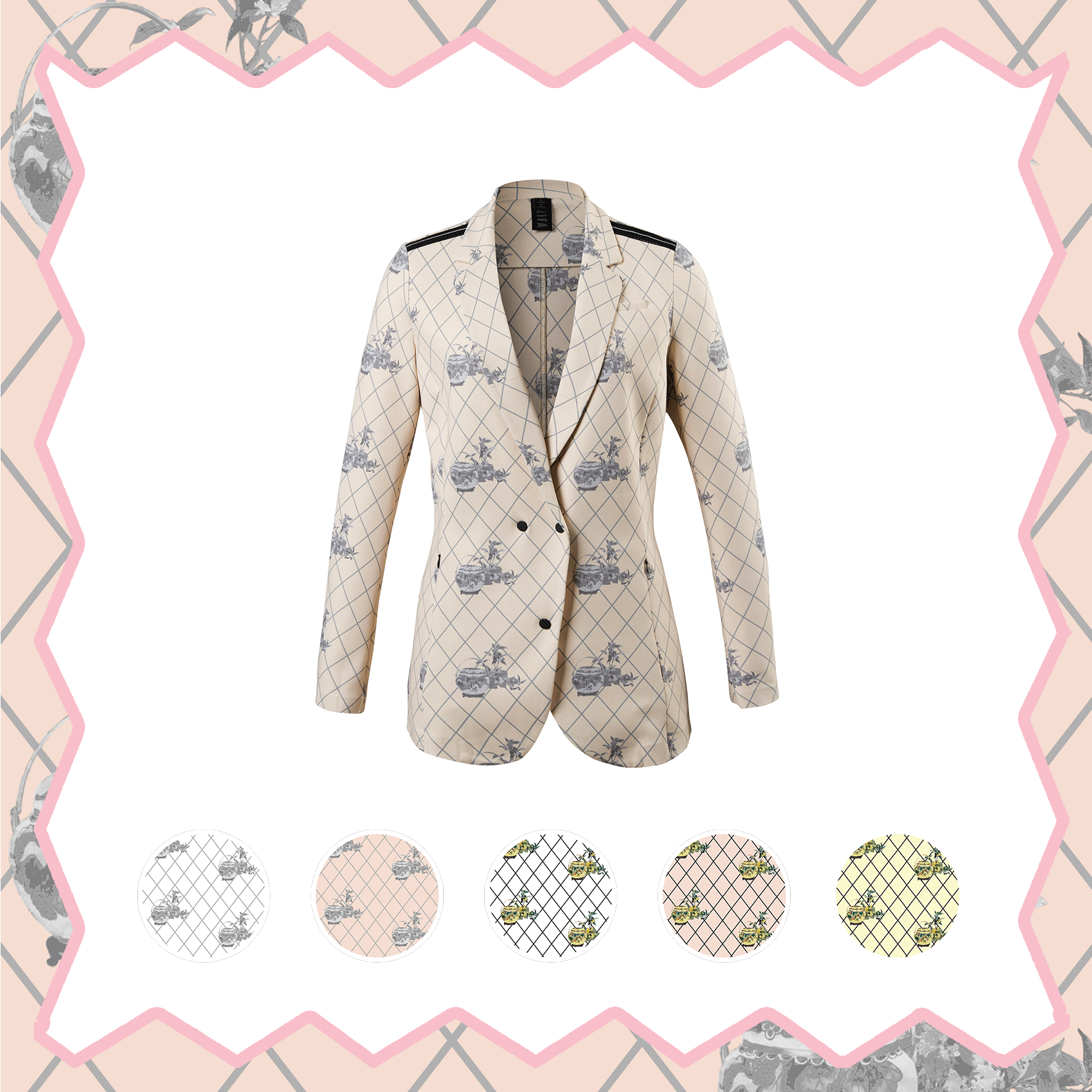 重新开启的上班日常,穿上一件印花西装来开启元气满满的新征程,我们都觉得很OK!