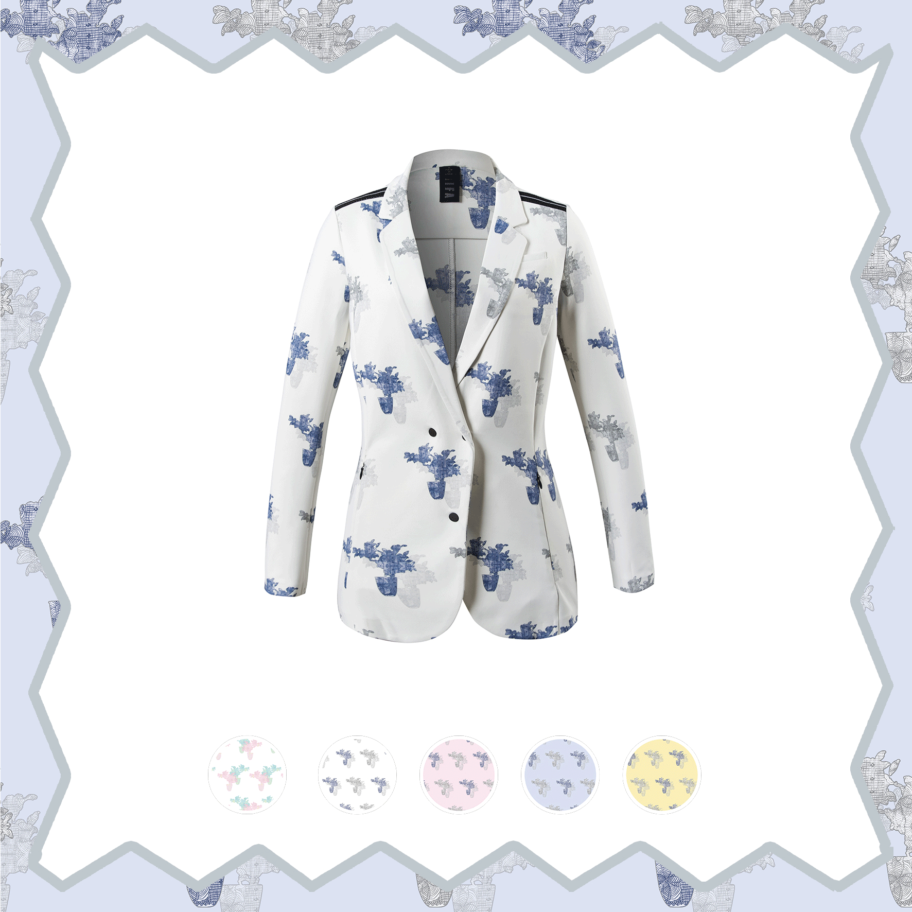 融入艺术印花的西装,在正式之中点缀浪漫,印花把中性和浪漫完美的平衡,适合商务洽谈也很适合日常穿搭。
