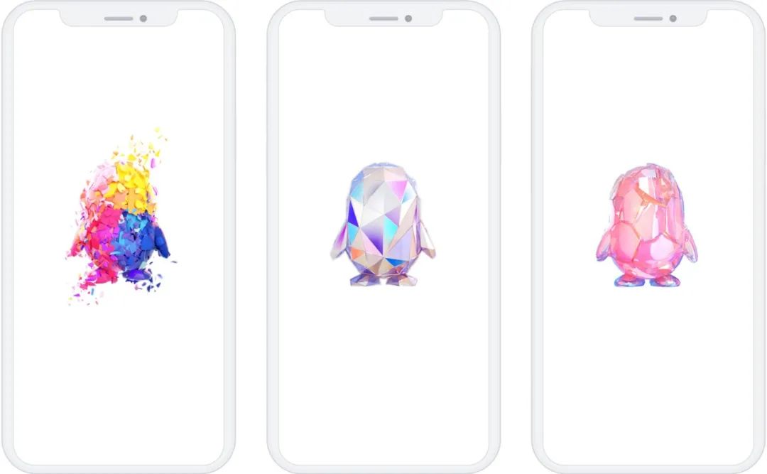 保持QQ标志性的企鹅形象,在新的闪屏里,我们用3D风格来取代现有的平面图形。我们计划用这种尝试来提升引领科技与潮流的信息品牌形象,同时通过运用具有扩展空间感的图像赋予视觉新鲜感。此外,高饱和度的颜色赋予品牌更加年轻和更多的生机感,而各种各样的纹理则增加了图形的深度和丰富性。