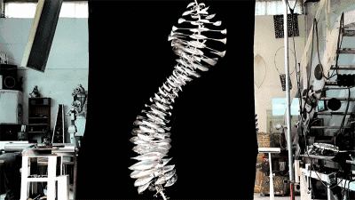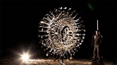 “风魔先生”Anthony Howe利用专业的三维工程软件设计并制造了一系列样子怪异的金属动力雕塑。它们最大的看点是可以借助风力“蠕动”,仿佛突然具有了生命。