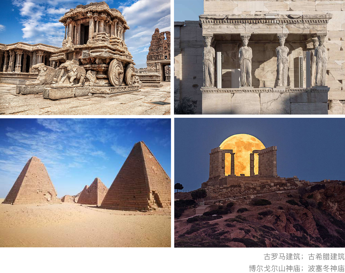 古迹中那一片片碎石瓦砾,断壁残垣有了更哲理诗意的解读。隔着数百甚至千年的遗址,连接现代人和古代人的思想,让我们感知残缺的遗址景色。古迹亦使得现代人超时空怀念去感受过去的人发生的事、或喧嚣或宁静,或战乱或和平。