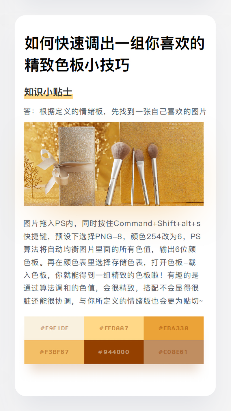 如何快速调出⼀组你喜欢的 精致⾊板⼩技巧
