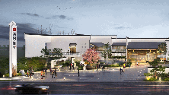 也诠释了以四水归堂的概念打造的院落式建筑,三横四纵规划出动静相宜的业态片区,粉墙黛瓦将山水徽韵注入空间。