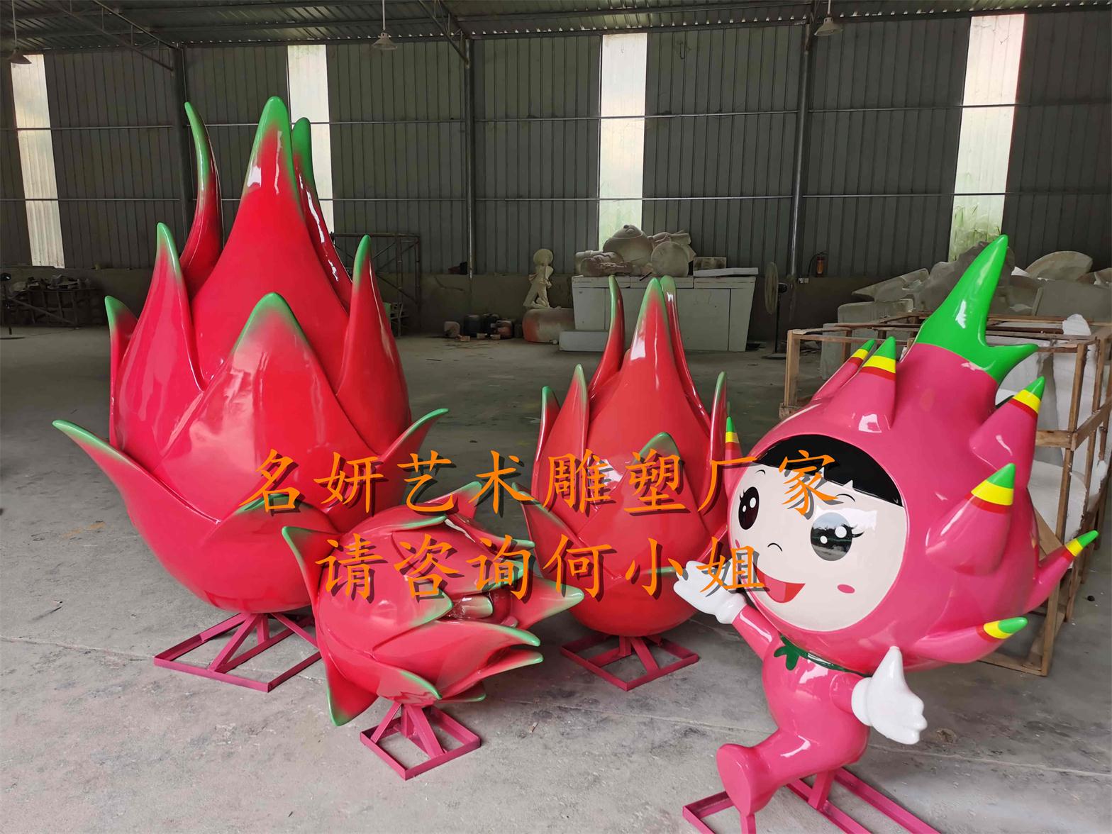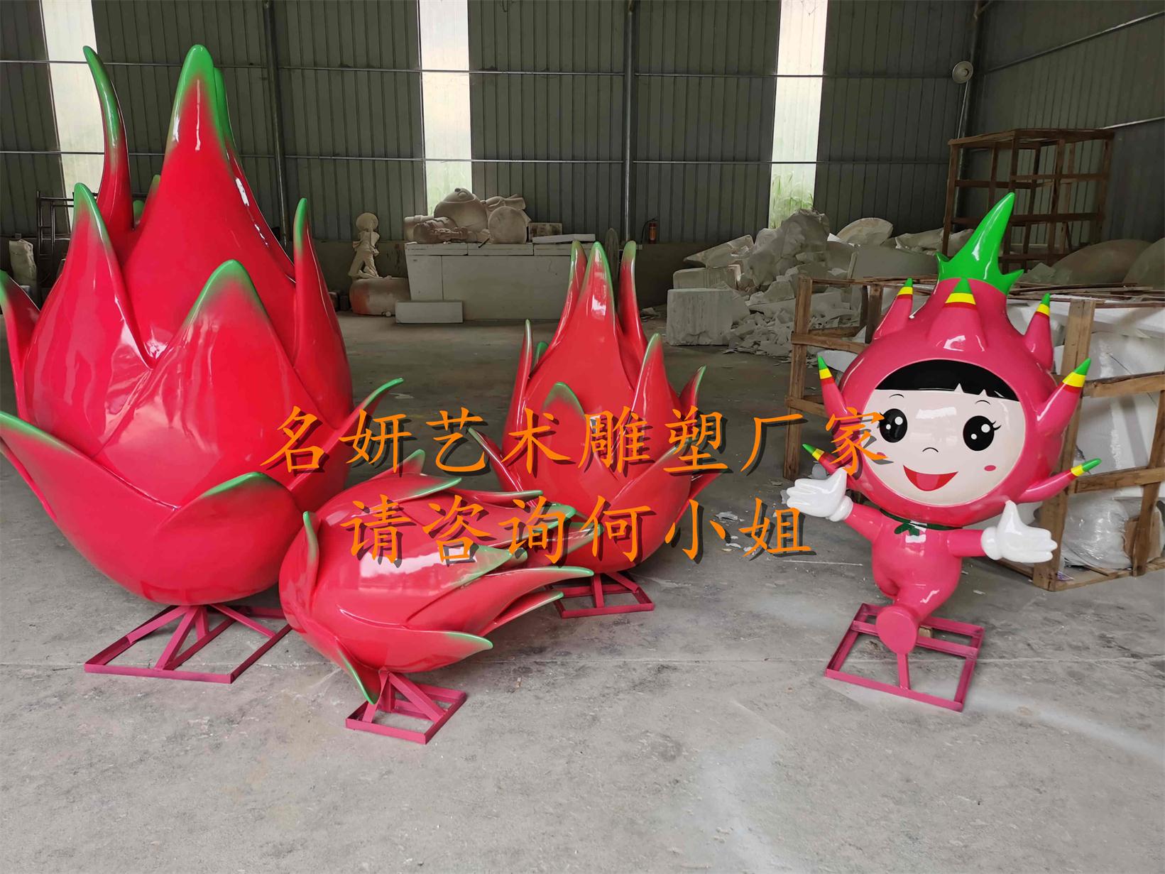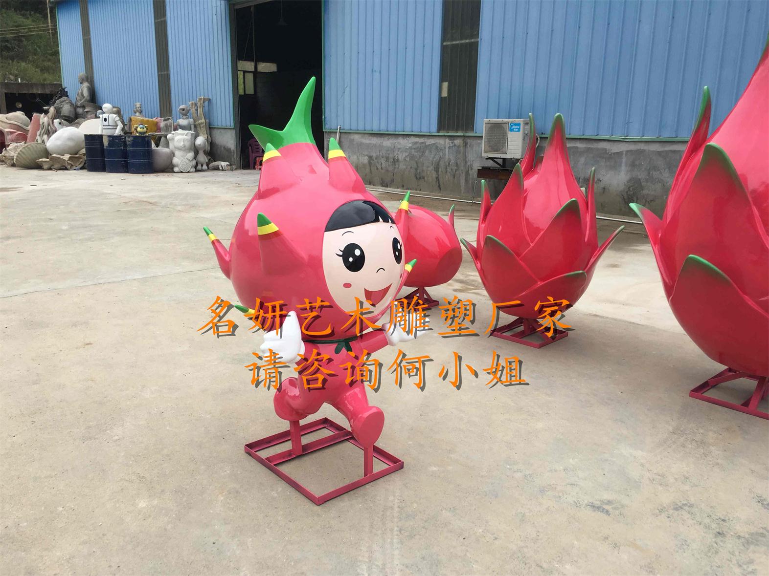 正是果园的丰收季节玻璃钢火龙果雕塑卡通公仔模型一起度过旺季