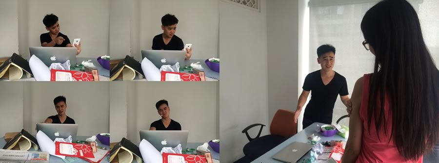 我们选择了一天下午进行拍摄,地点在一所大学的某个教室,背景使用白色墙壁,由于之前的样稿和创意准备,拍摄有的放矢,素材经过简单的准备,该有的都有了,所以过程非常顺利。在这里静电着重跟大家强调与“演员”的沟通。前期工作一定要准备到位,同时将自己的创意和设计背景详细的表达给我们的演员,他们说不定会给你意想不到的惊喜。 最终经过一个下午的拍摄,我们得到了如下照片。其中很多照片属于模特自由发挥,表情及动作都超出预期,静电不得不佩服,专业的毕竟是专业的,不一样啊。