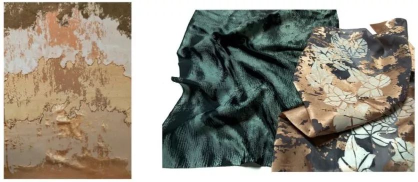 用数码技术进行印刷。根据设计的花纹图案选择相应的印花工艺会另作品充分的表现出设计师的思维与风格。