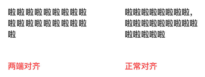 看到这里是不是对水平对齐与水平居中对齐混淆了?说实话他俩还真是不一样;出现的场也是不同的。通常水平对齐较多出现在文章中其实也就是文章中的左右对齐;水平居中对齐 是在单元格中间显示;也就是我们B端中的列表内字段的对齐方式;有的表内文本既可能只有一行,也可能有两行,于是使用这种对齐模式就可以适应不同的情况;说到这里想到了文本的对齐方式,有很多情况下大家都会使用两端对齐进行设计:有时却忽视了这样强制对齐会导致文字间距被奇怪的修改,非常影响视觉效果和阅读体验。专业的网站对多行文本的处理都使用自然对齐,右侧不统一是正常现象。