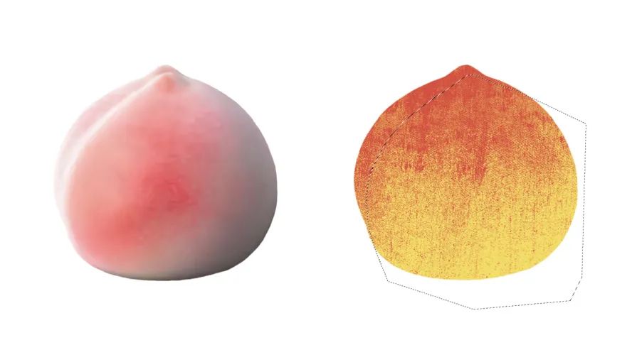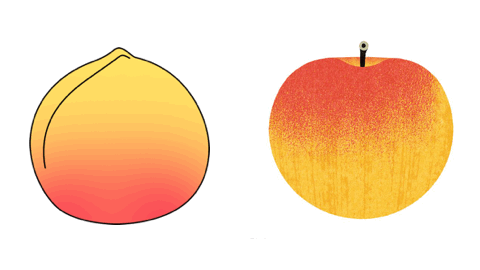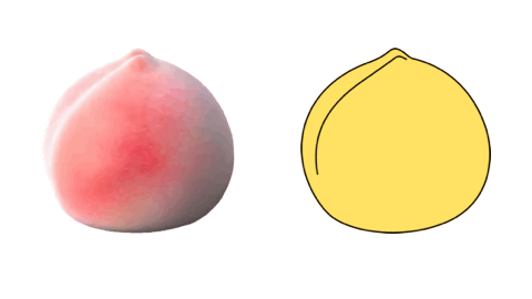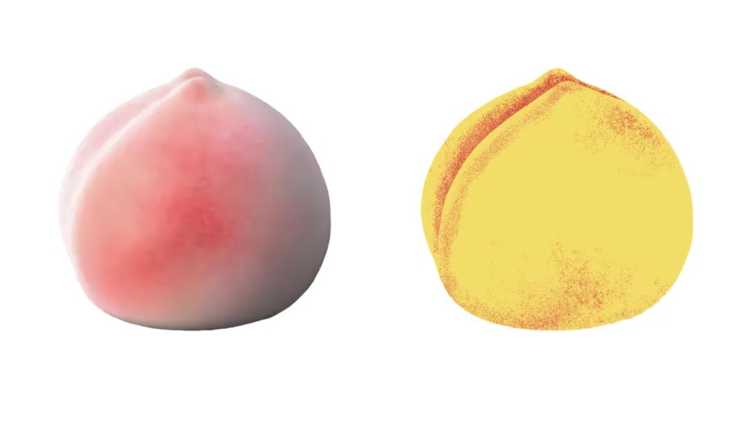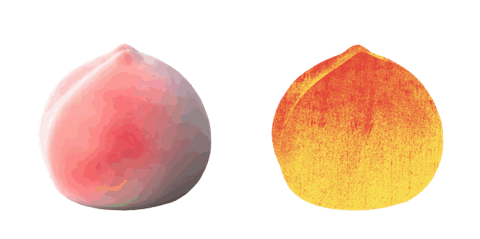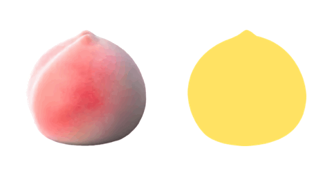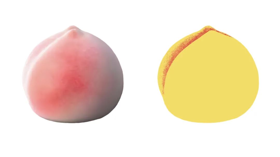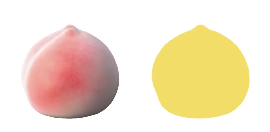 下面我们来解构下这种风格。回到我们的桃子,依然是先变成色块。