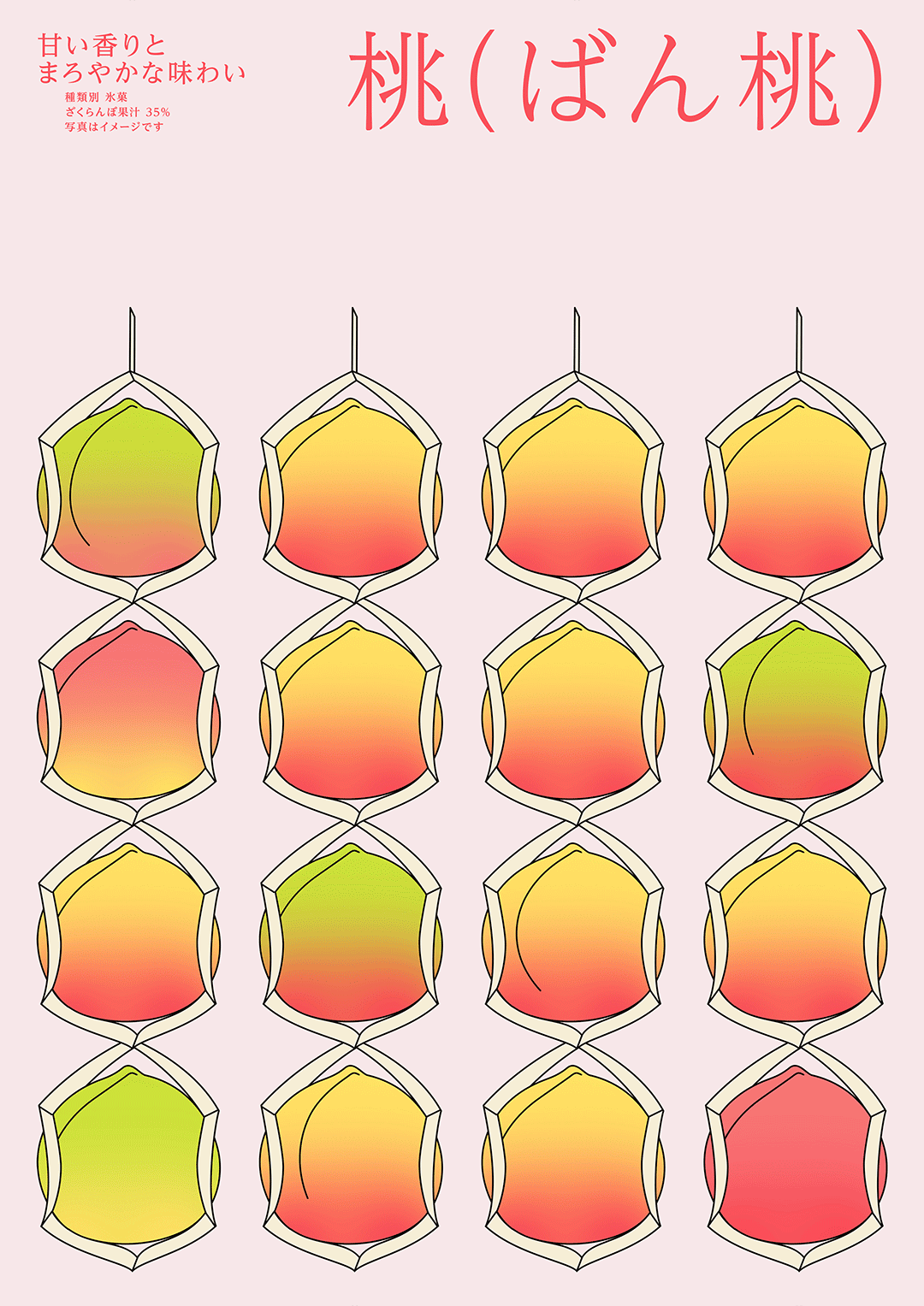 本期我们就以这枚桃子👇为例,聊聊几种简单易行的图形化设计的思路,希望可以给大家带来更多灵感。