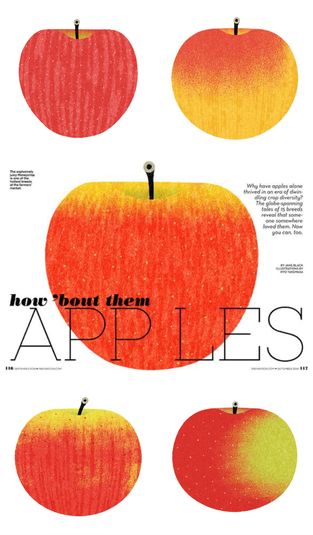 首先来观察下Ryo Takemasa画的这枚苹果👇,圆形的水果有很多,是什么能让你分辨出这是一枚苹果呢?