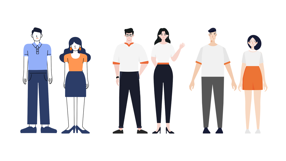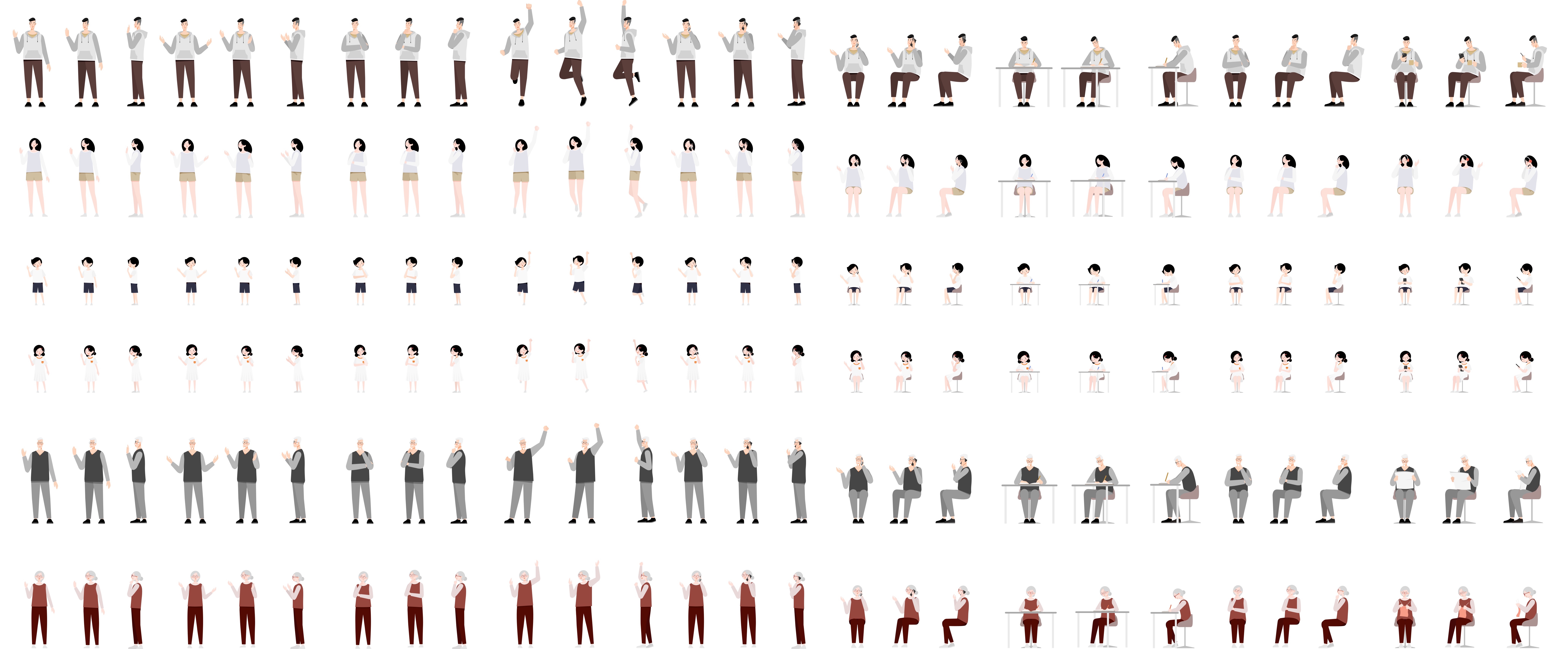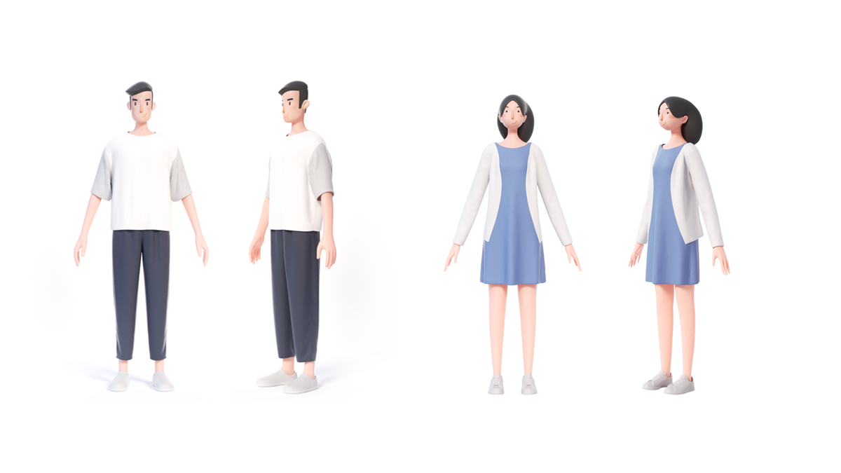 人物形象体系及预设最大的价值在于提升整体设计师效率,设计时长大大缩短。设计时直接调用人物形象,调整动作,添加调整素材,快速搭建出一个2D或3D场景。节省了设计人物形象及素材的时间。