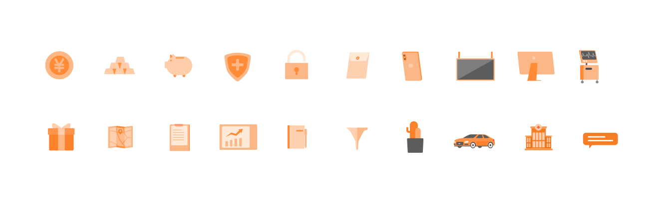 各业务场景有对应的道具元素作为辅助,通过收集和归纳,我们将其提前绘制完成,设计师使用时直接调用即可。