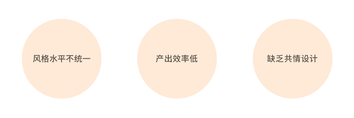 我们看到目前存在的主要问题是:风格水平不统一、产出效率低、缺乏与用户的共情设计。