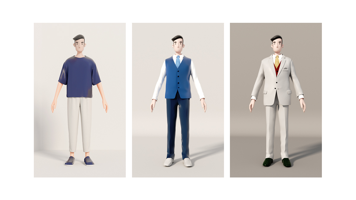 银行的业务场景中不同的角色形象,则通过不同的发型和服饰来塑造不同的角色,提高角色在各业务场景的利用率。