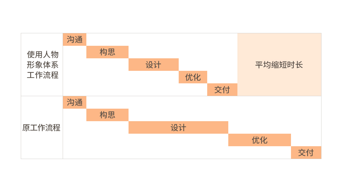 对比原工作流程,使用人物形象体系工作流程保证设计效率的同时兼顾质量。