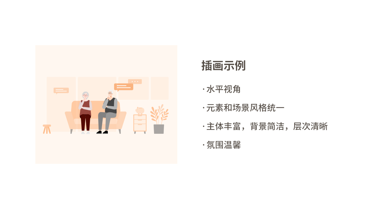 为了让视觉设计师在使用 2D 人物库时,画面更加和谐统一,给出示例,主要的纯扁平风格、带质感强运营氛围风格的使用。