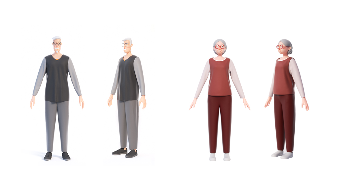 确定方案后,便是结合配色规范、基础人物比例、造型细节等对选中方案的中年父母形象进行优化。