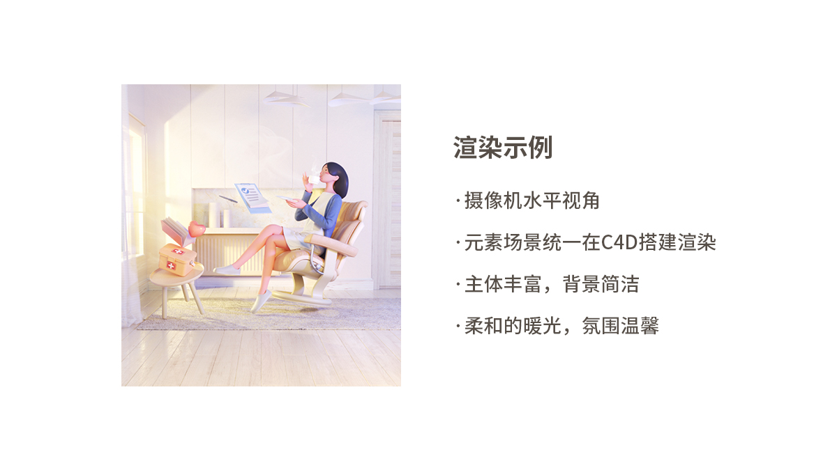为了让视觉设计师在使用 3D 插画库时,画面更加和谐统一,同样给出了渲染示例。
