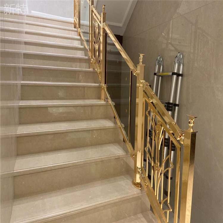 玻璃楼梯护栏,也是受到许多业主喜欢,外观简约大方,铝型材坚固耐用,不生锈。安装铜镀金楼梯玻璃护栏,更让你的室内空间广阔。