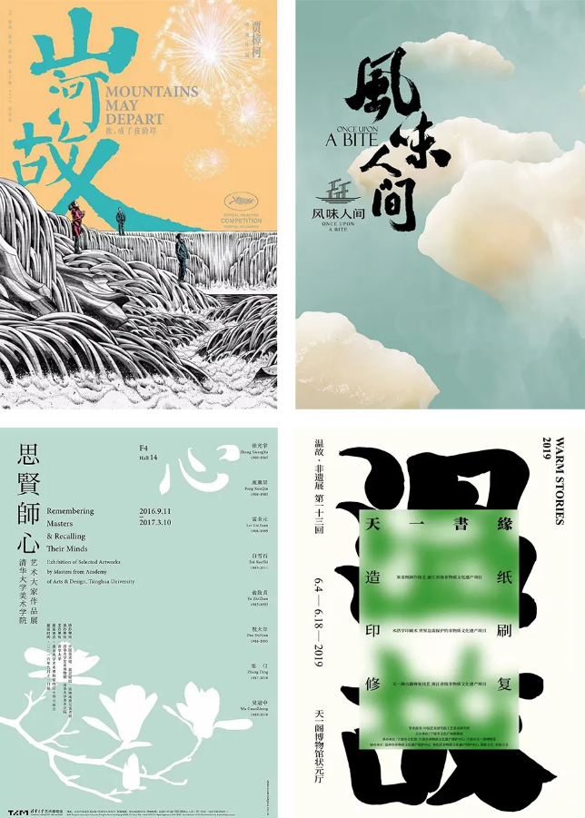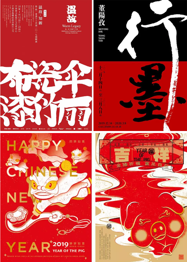 当然还有最基础的横竖编排,最初汉字是以竖向排列,从右到左的书写方式。这一特征也继续运用到设计中,竖排的布局呈现出浓烈的中国古典文化气息。