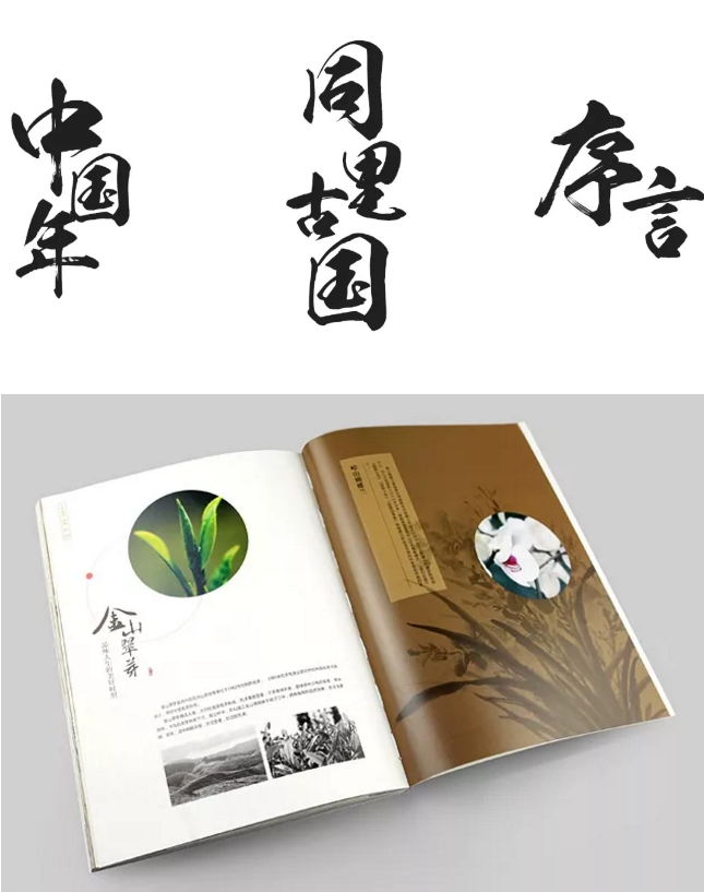 书法体是中国风设计中常见的设计元素之一,也是汉字特有的艺术形式。同一个文字用不同书法来写,传递出来的意境也不同。如果书法运用得当,往往起到画龙点睛的效果。在商业设计上所使用的书法体,一般由专业的字体设计师或书法家所设计。