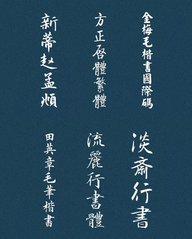新蒂赵孟頫、金梅毛楷书国际码、方正启体繁体、田英章毛笔楷书、流麗行書體、淡斎行書(非免费商用字体,仅供学习)