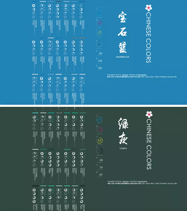 怎样的配色方案才能体现出浓厚的中国韵味感?为了表现出复古典雅、怀旧的感觉,会使用一些低饱和度的颜色。但为了避免画面过于沉闷压抑,有时候需要一些高亮度、高饱和度的色彩作为局部的点缀,使画面变得生气勃勃。例如以下的搭配: