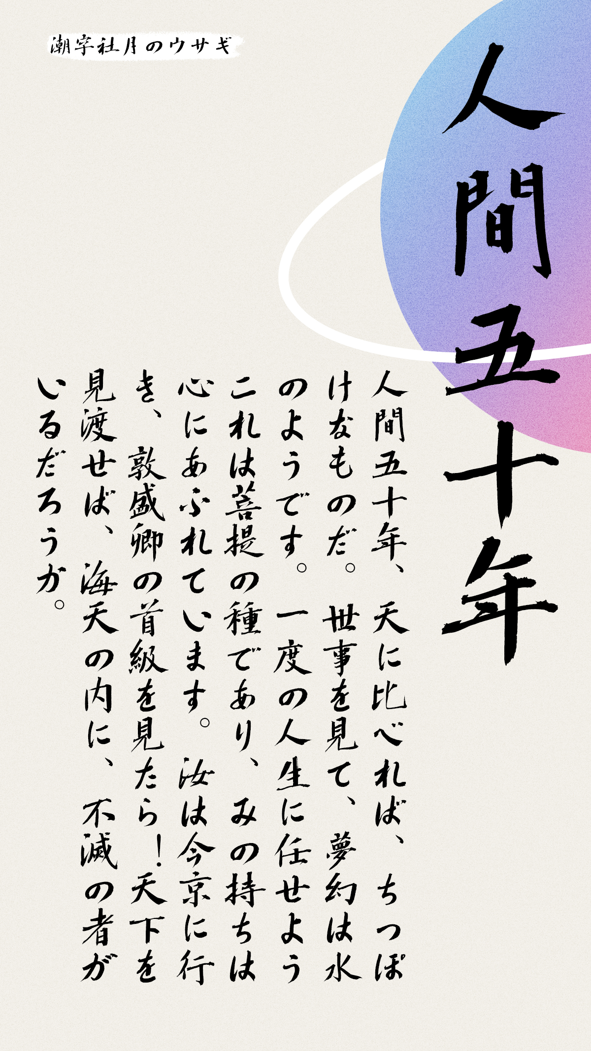 潮字社灵兔月野体,是一款极具“边塞风情”的字体,它以楷书为基准,同时又有行书笔画的牵丝连带、草书的张扬潇洒,显得灵动自然,给人以边塞疆场的广袤、辽阔、磅礴之感,提供中日双语、简繁日字形,可以广泛应用于海报、影视、旅游宣传、包装设计、文创产品、电商、动漫等领域。