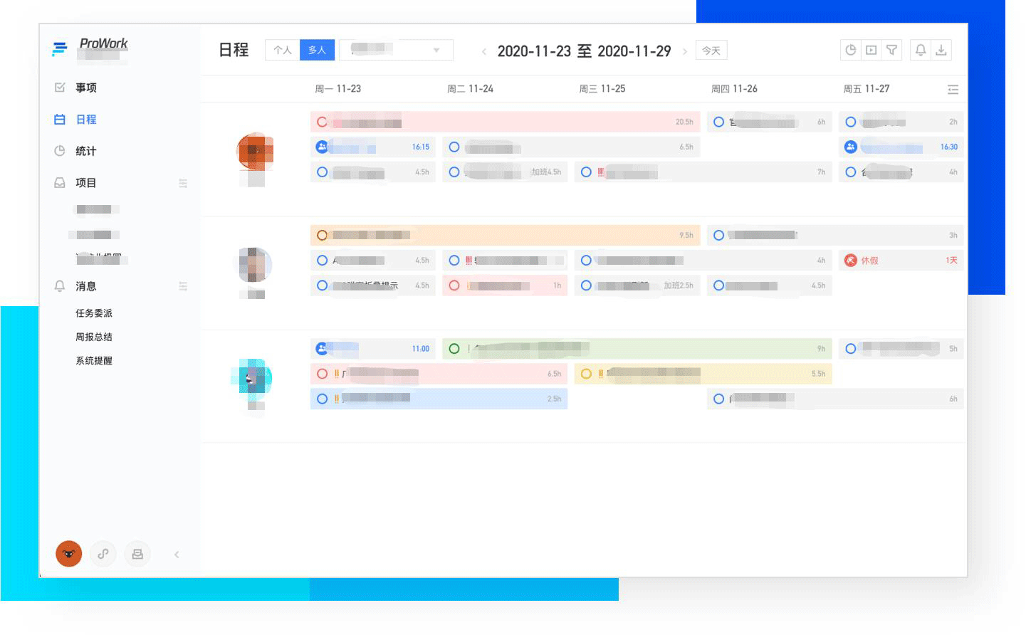 多人视图下,管理层能轻松了解项目或团队成员的工作安排和进度,及时安排工作跟踪进度做到内容透明,信息互通。
